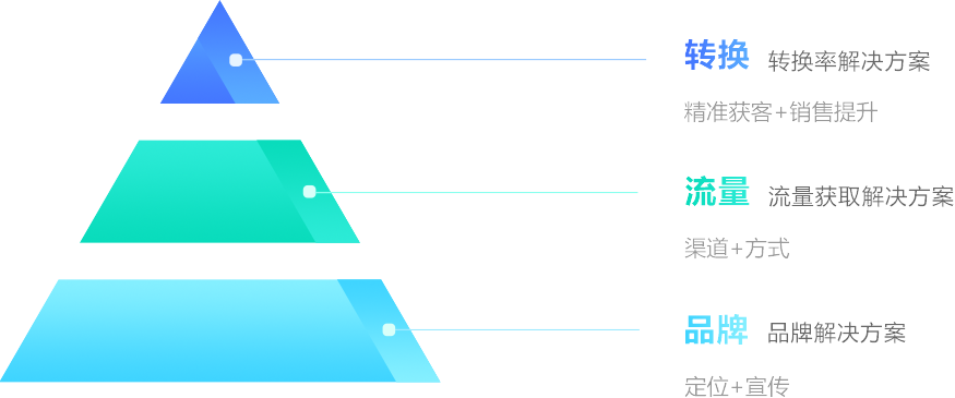 獨(dú)創(chuàng)“蝶變”營(yíng)銷理論,從品牌到流量,再到最終營(yíng)銷轉(zhuǎn)換,逐級(jí)分析并給出解決方案,完成整體營(yíng)銷目標(biāo)。